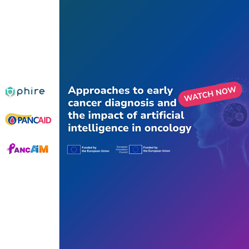 Early cancer detection is one of the most important challenges in oncology today. This 60-minute webinar will bring together healthcare professionals and researchers from three EU-funded research projects, PHIRE, PANCAIM, and PANCAID, to present different approaches to improving early diagnosis through biotechnology and artificial intelligence in pancreatic and bladder cancer. Through different strategies, the three projects share a common goal: making cancer detection faster, more accurate, and more personalised.
